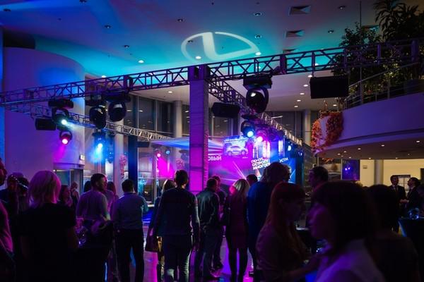 Световые логотипы, проецируемые с помощью гобо. Гобо – это трафарет для световых приборов, позволяющий проецировать логотип компании на потолки, стены или пол площадки. Стоит копейки, а выглядит очень красиво!