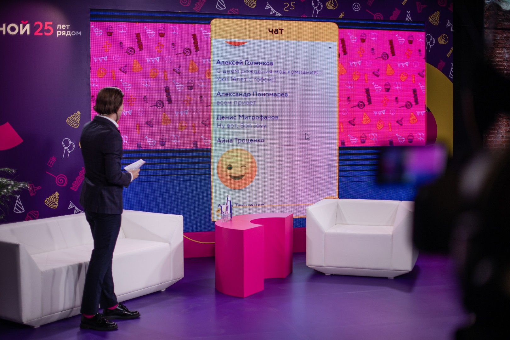 Project:Svyaznoy celebrated its 25th anniversary with a bright and juicy online event for all employees. The event brought together thousands of colleagues from all over the country on one platform, created a single space where the personal stories of top managers and line employees formed a vivid impression and memory of 25 successful years. The main stage, excursions to Russian cities from Vladivostok to Kaliningrad, intellectual tournaments, musical and astrological interactions, interviews and quizzes, radio shows and much more - this is how "Svyaznoy" proved that they were "25 years near."