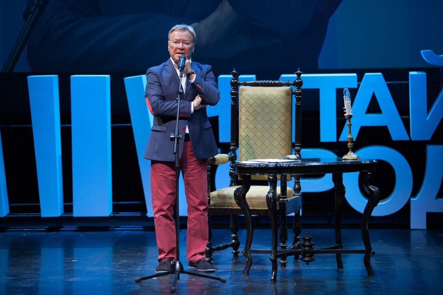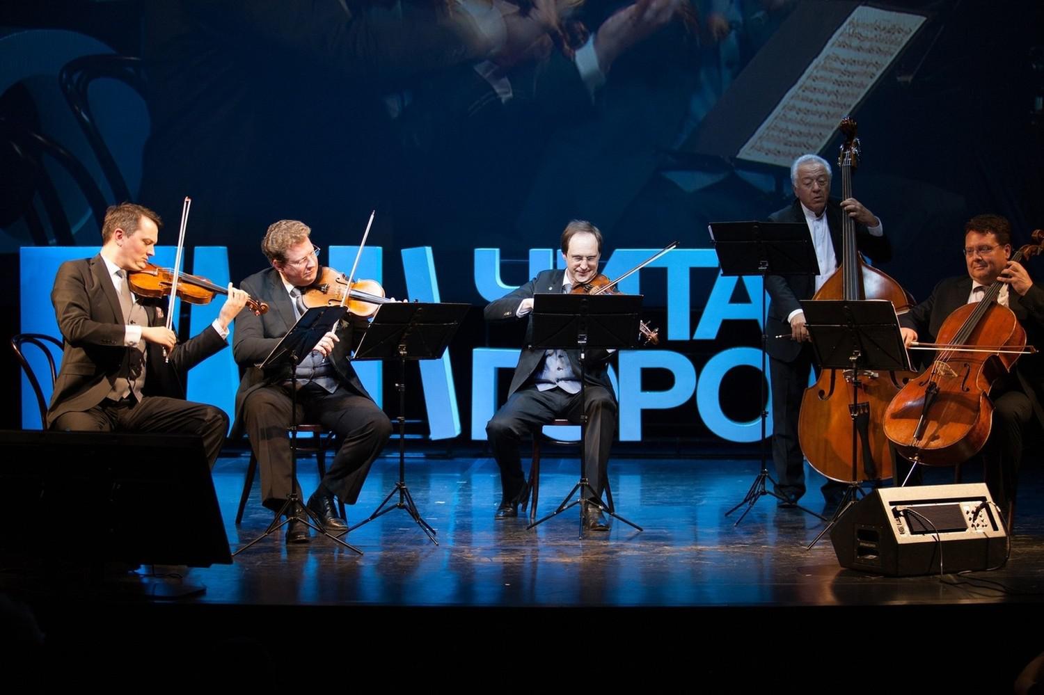 Между чтениями на большом экране известные современные авторы: Захар Прилепин, Дарья Донцова, Вадим Панов, Сергей Литвинов, Татьяна Полякова и другие, - поздравляли «Читай-город» с юбилеем. Особую нотку мероприятию добавило выступление коллектива солистов камерного оркестра «Виртуозы Москвы».
