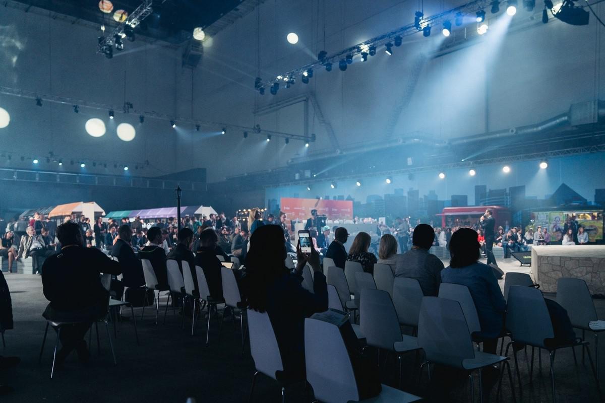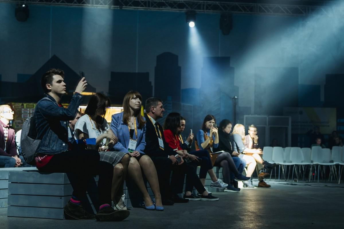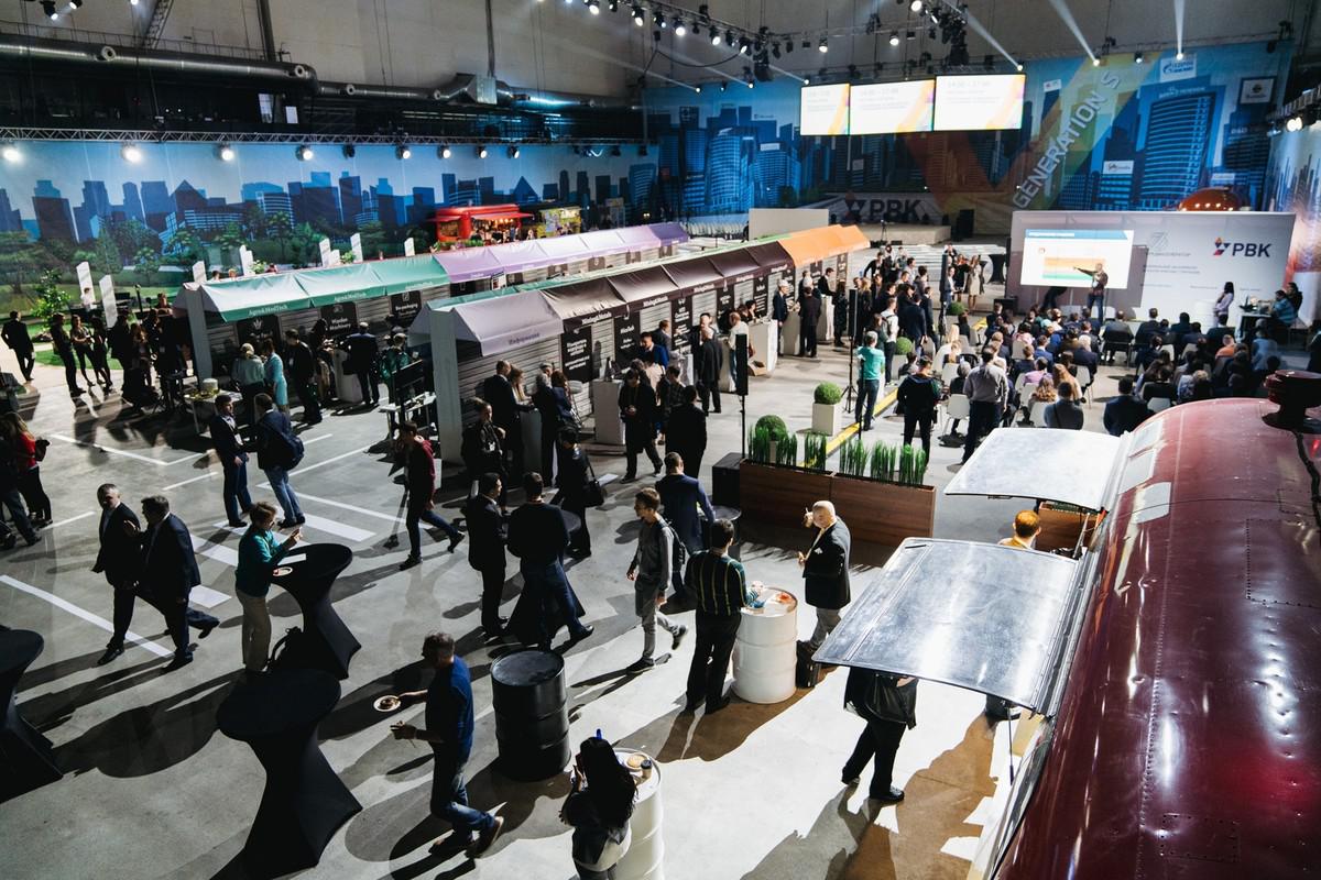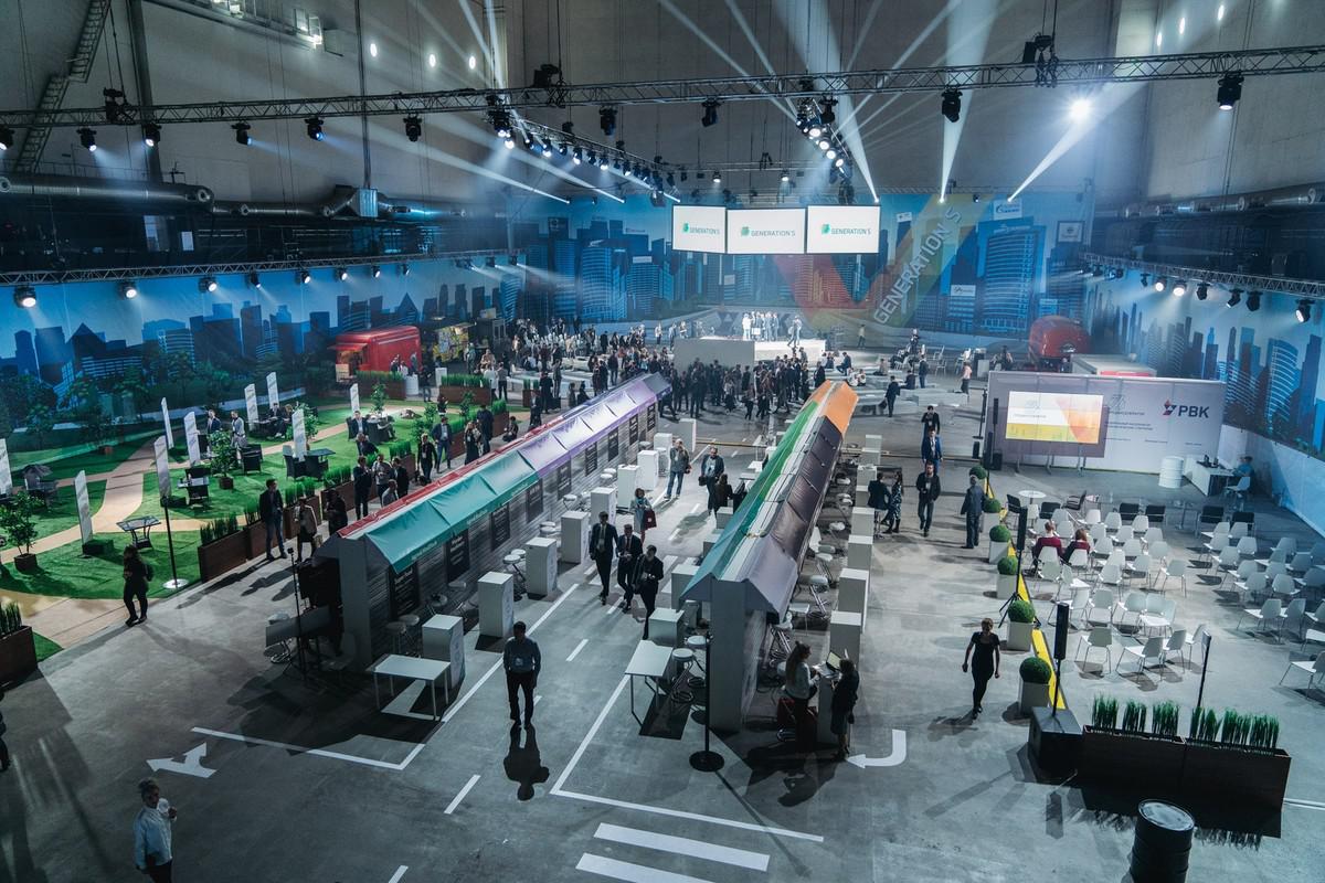 Пространство было организовано в стиле большого города: пейзажи мегаполиса, дорожная разметка, вывески, фургоны-закусочные и даже фонари — все как на настоящей улице. Четыре зоны формировали единое пространство: «Парк Партнеров», «Проспект Перспектив», «Кампус Предакселератора» и «Главная площадь» – сцена со зрительным залом.