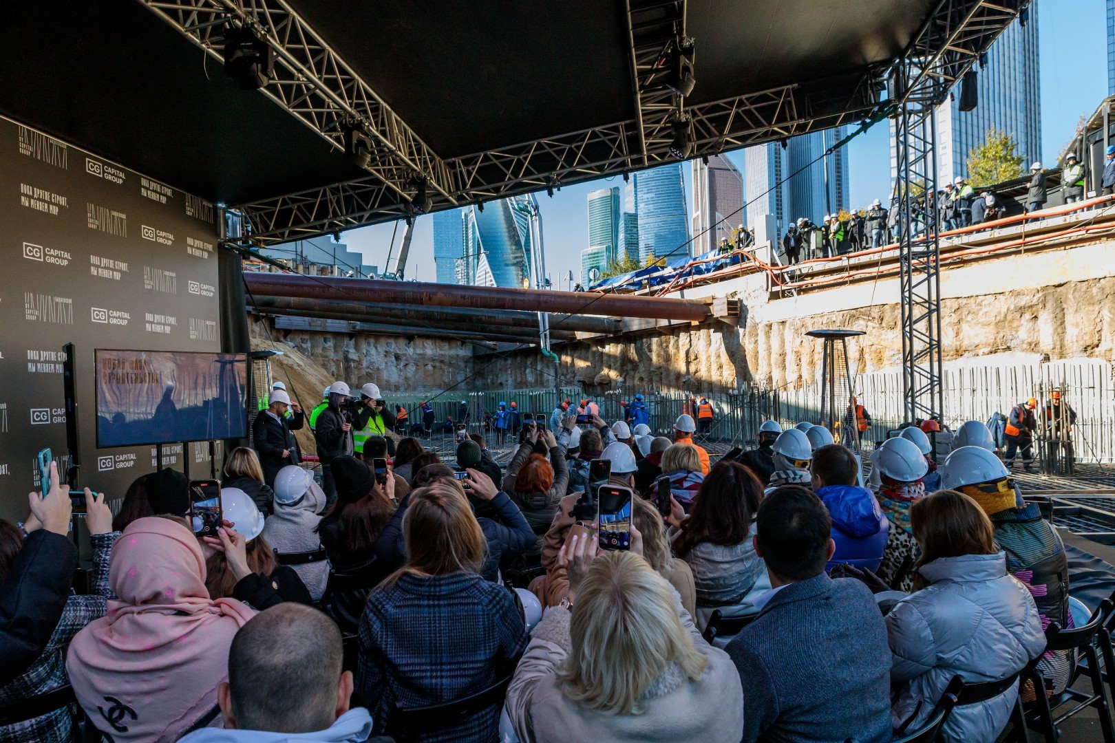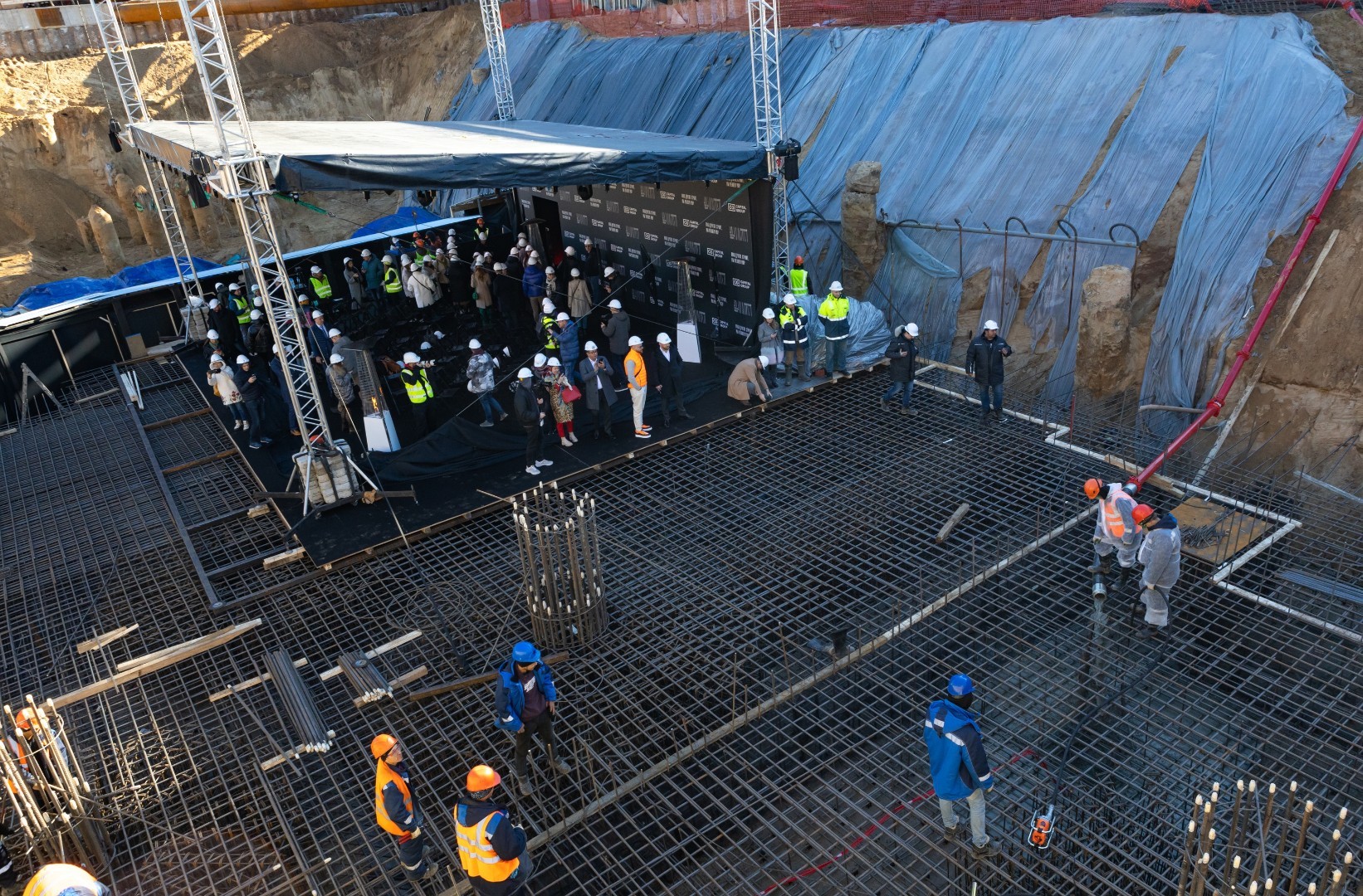 Project:Residential complex "Badaevsky" is one of the most technologically advanced and discussed residential projects in Moscow. The guests of the event, which took place inside the construction site, saw how the specialists began monolithic work, and literally became participants in the pouring of the foundation slab. A mysterious intricate tunnel led to the final point, the presentation of the project in a beautiful space, and - the unexpected disappearance of walls and barriers.