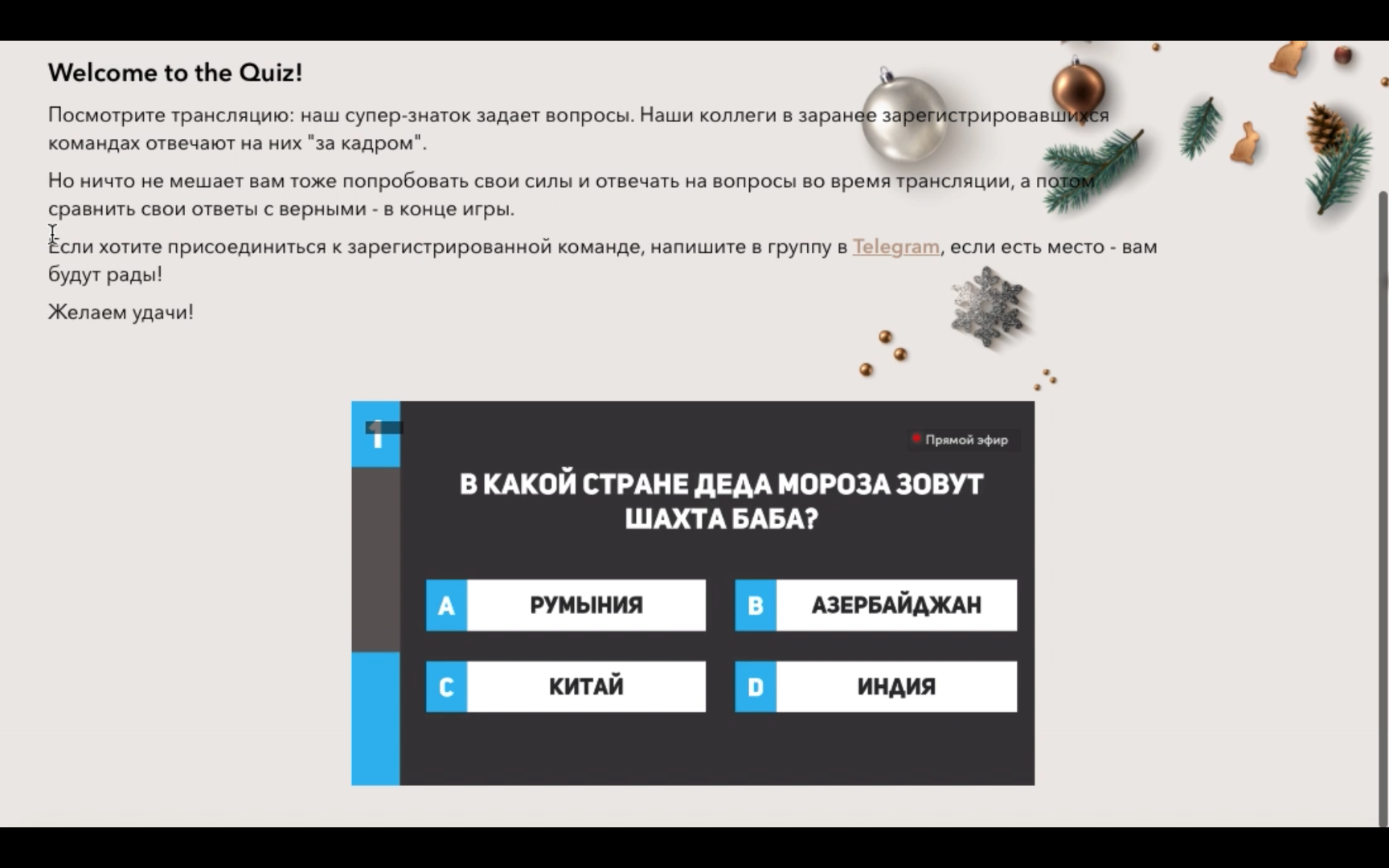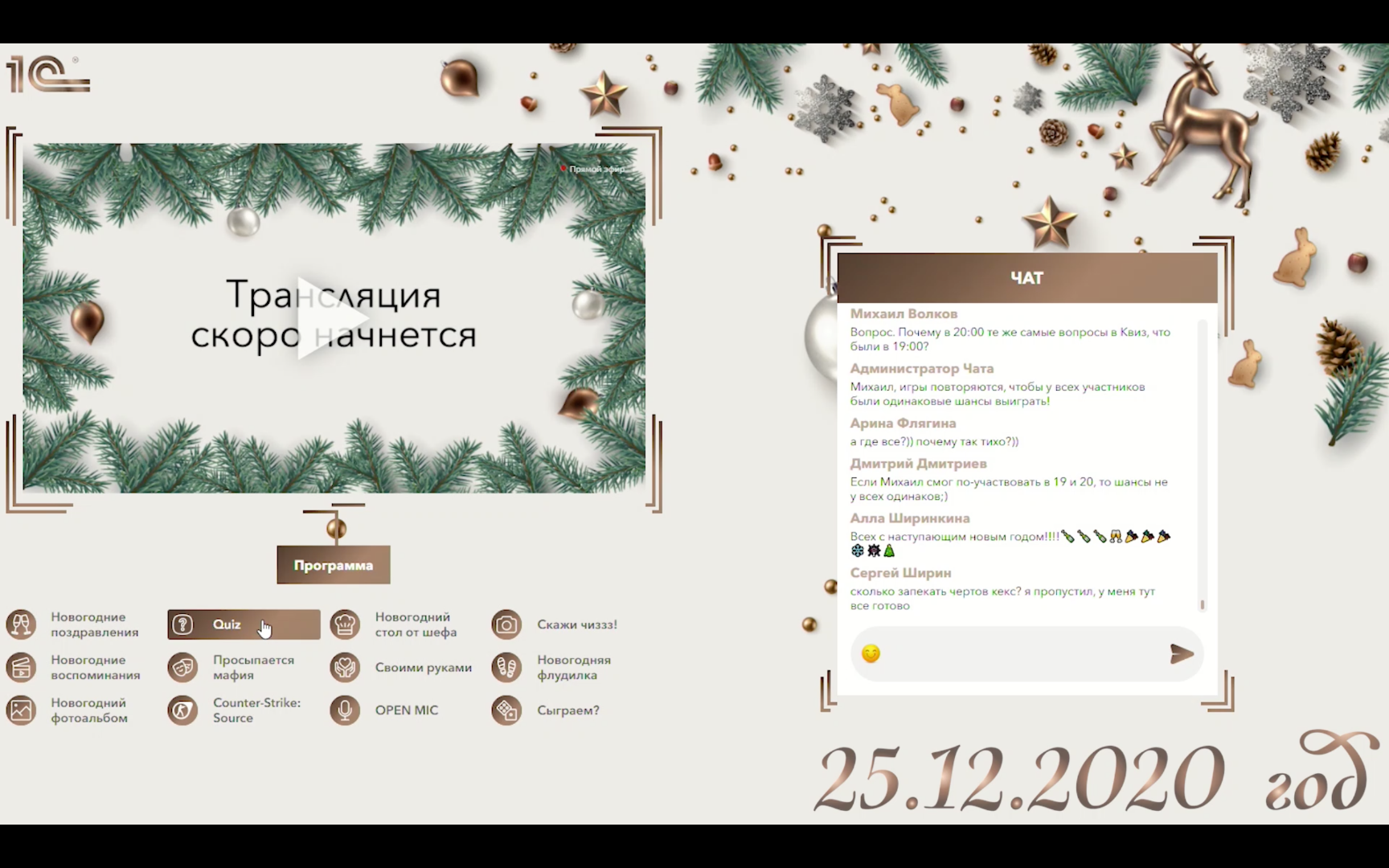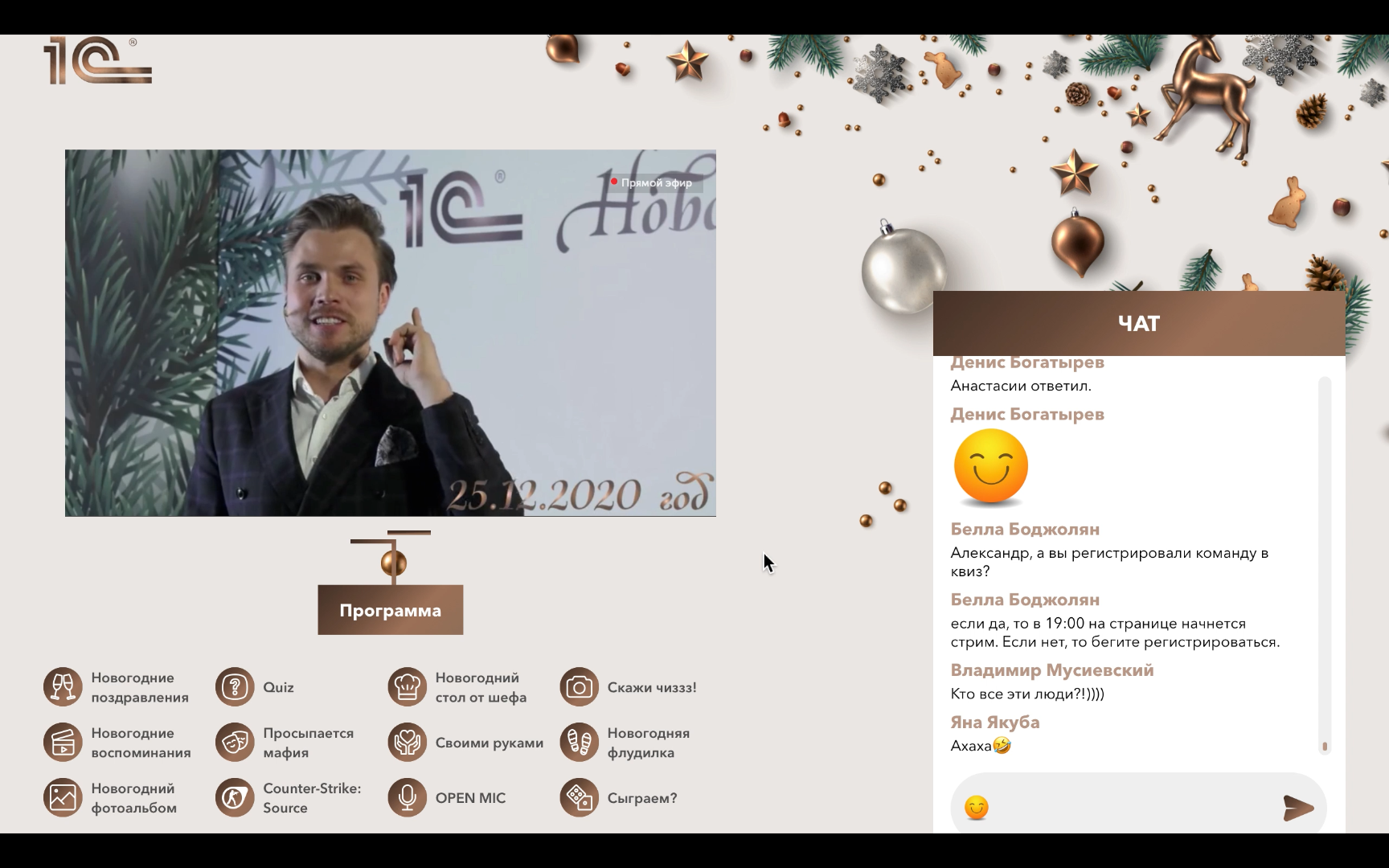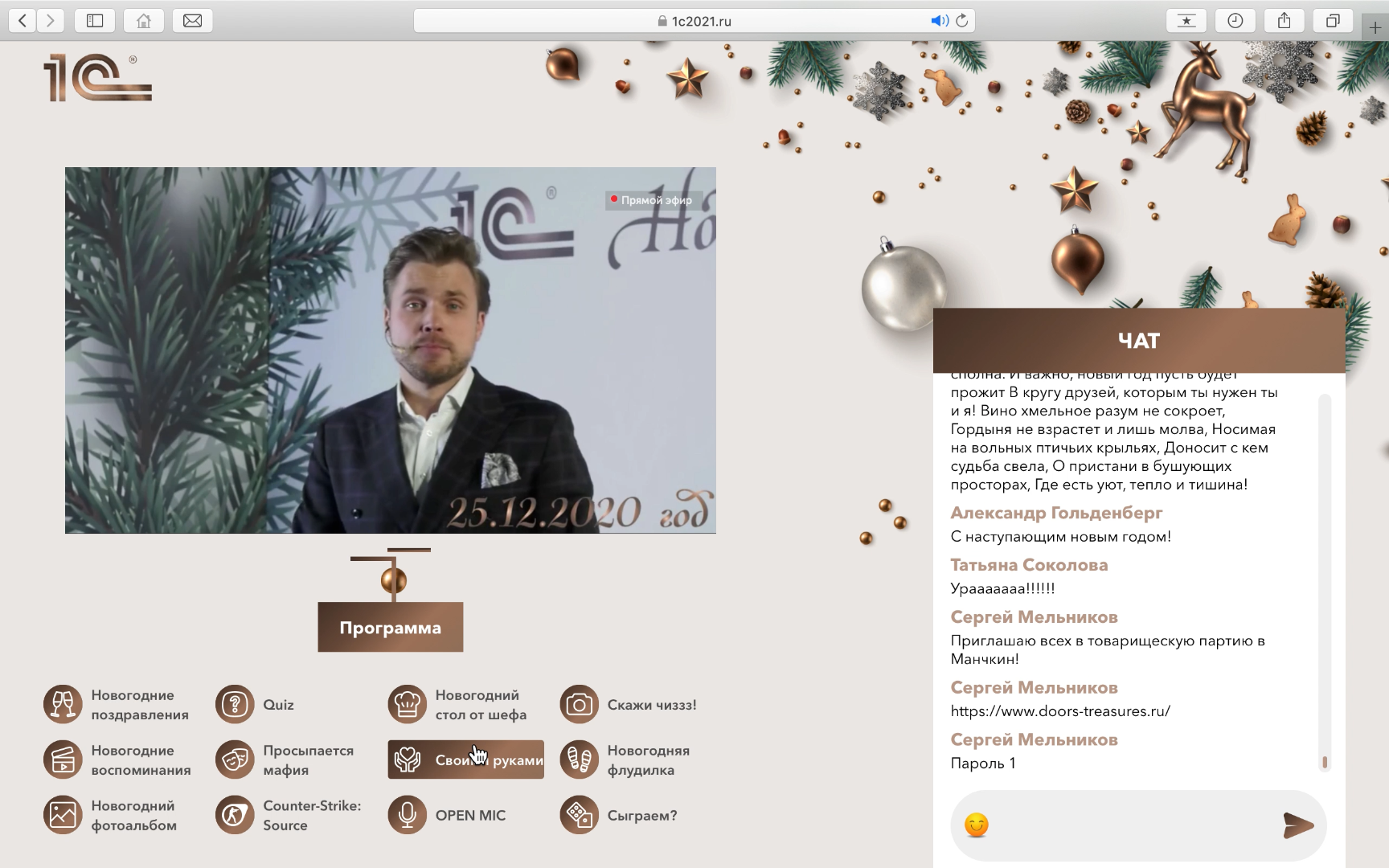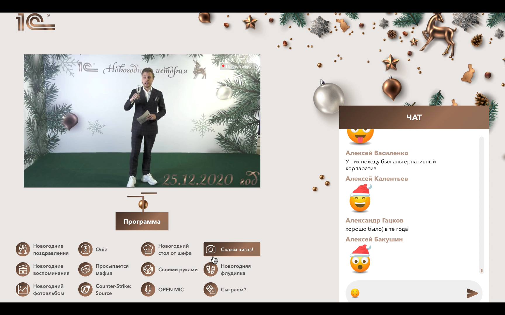 Goals and objectives: To hold a New Year corporate event, unite employees and maintain brand loyalty Number of participants: 1000+ people Format: Interactive online platform with live broadcast from the studio
