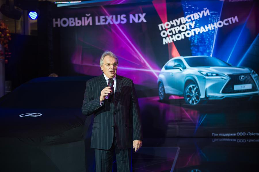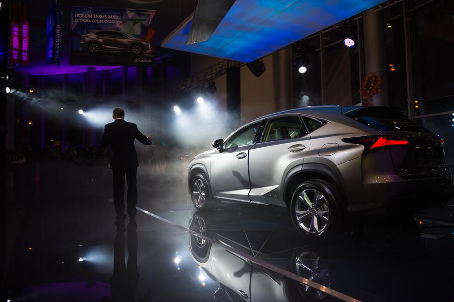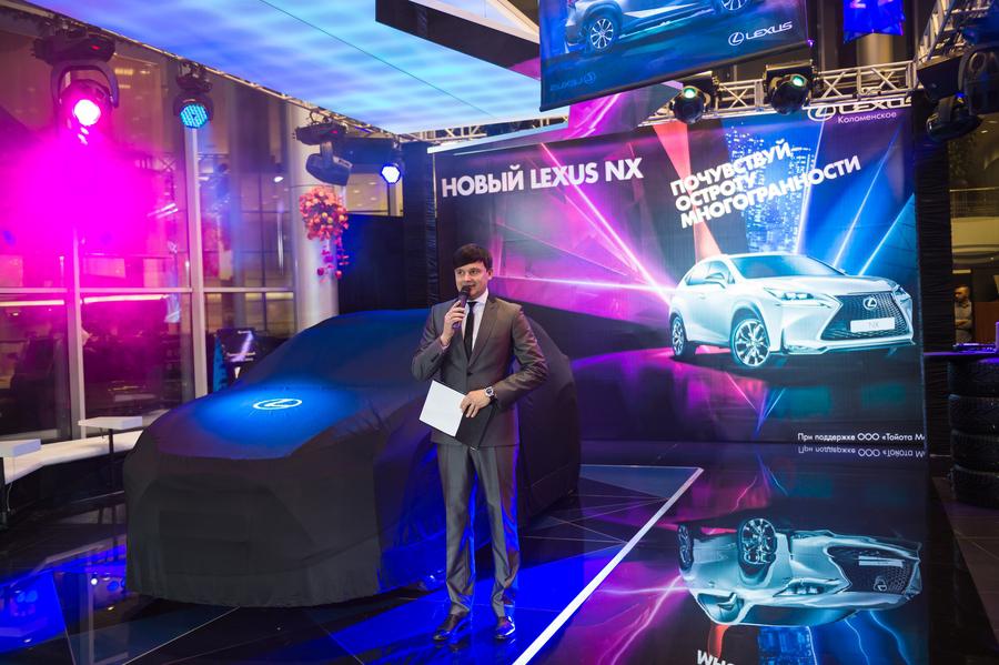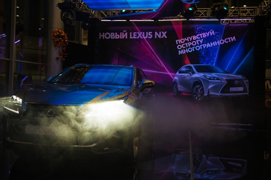 После приветственной речи директора дилерского центра гостям наконец-то был представлен новый автомобиль. Потрясающе красивый Lexus NX появился в лучах света и клубах дыма, эффектно подчеркнувших все мельчайшие детали его внешности.