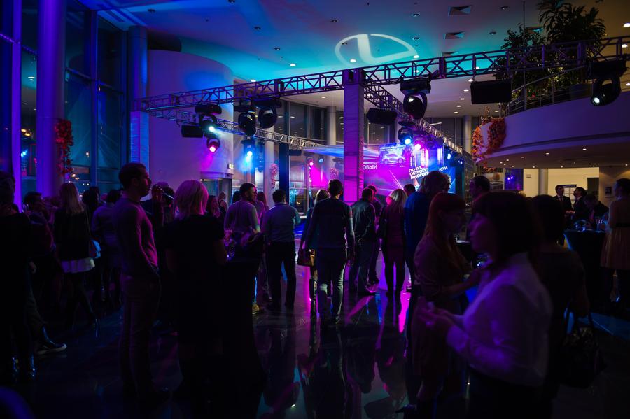 В назначенное время специально приглашенные VIP-клиенты дилеркого центра попали не в обычный автосалон, а в атмосферу стильного светского события. Красивое освещение, необычные декорации, тонкая подача закусок и напитков - каждый гость вечера мог почувствовать себя посетителем дорого ночного клуба.
