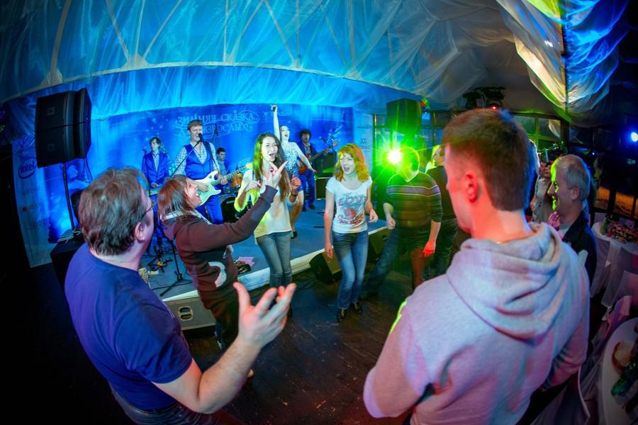 Когда солнце скрылось, а все гости набегались на улице, началась вечерняя часть мероприятия. Ведущим вечера стал Андрей Родной - очень веселый артист и ведущий из "Убойной лиги" (т/к ТНТ). После церемонии награждения лучших сотрудников пришло время для музыки и развлечений. Музыкальное оформление вечера обеспечила гениальная кавер-группа "ПлеерБит" - очень энергичные, зажигательные, красивые и по-настоящему музыкальные ребята.