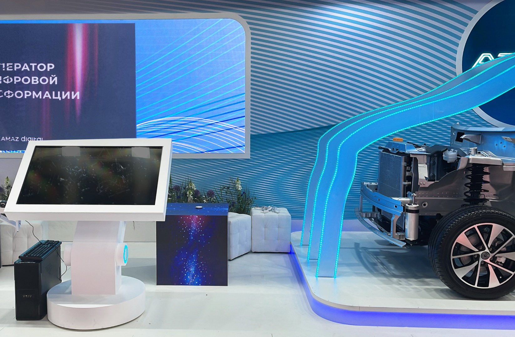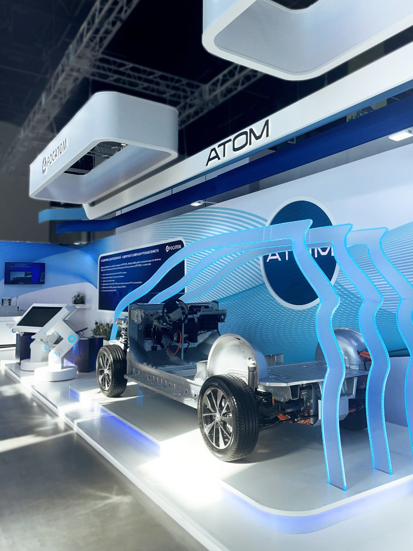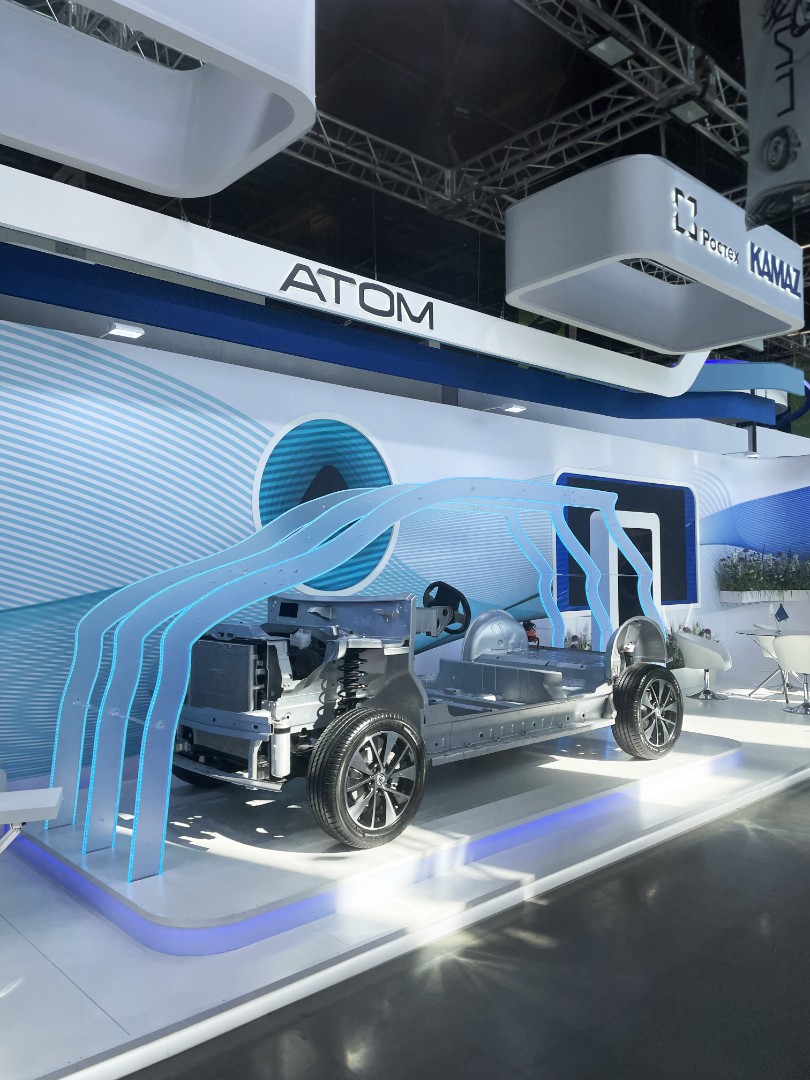 • Проект: В рамках форума-выставки ЦИПР 2024 в Нижнем Новгороде мы построили самый большой стенд экспозиции, объединивший продукты трёх крупнейших компаний: ГК РОСАТОМ, КАМАЗ и КАМА. Красивый и насыщенный деталями стенд вошел в маршрут обхода экспозиции Председателя Правительства Российской Федерации Михаила Мишустина. На стенде были представлены несколько сложных российских программных комплексов, макет технологии «Атоммайнд», генеративная фотозона, а центральной точкой притяжения стенда стало шасси будущего полностью российского электромобиля АТОМ.