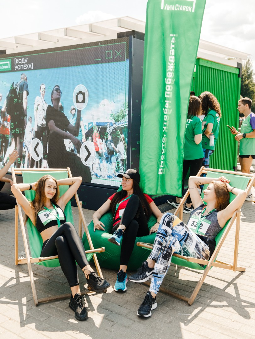 • Проект: «Лига Ставок: Код успеха» - именно так мы назвали бренд-зону компании в рамках ИТ-марафона, ведь именно она стала точкой притяжения всех спортсменов и их болельщиков из ИТ-сообщества. Стильное, технологичное поп-ап пространство привлекало участников органическими напитками, интеллектуальными играми, интерактивной фотозоной и розыгрышами призов.