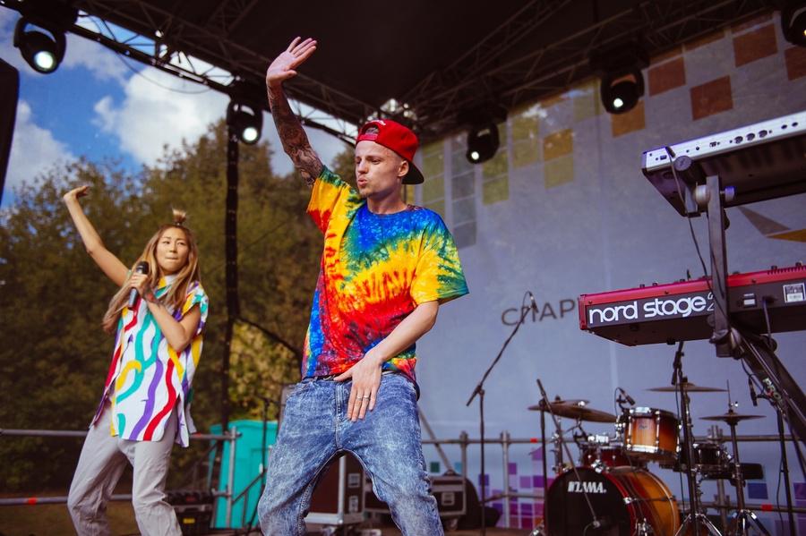 На главной сцене Спартакиады весь день проходили показательные выступления по трюковому футболу, баскетболу, йойоингу, джолли-джампингу, мастер-классы по современным танцам от звезд dance-движения. Ведущий Алексей Богданов активно собирал всех участников на эти интерактивные уроки.