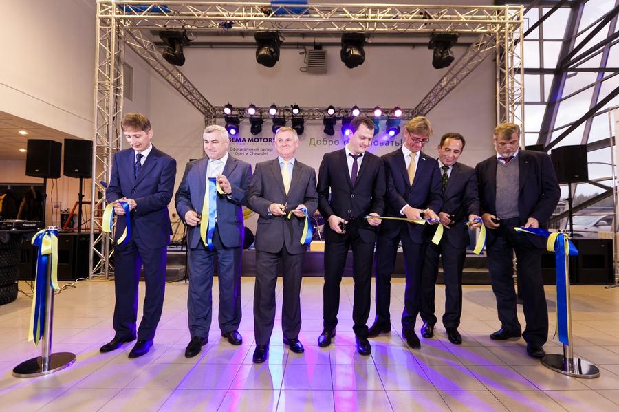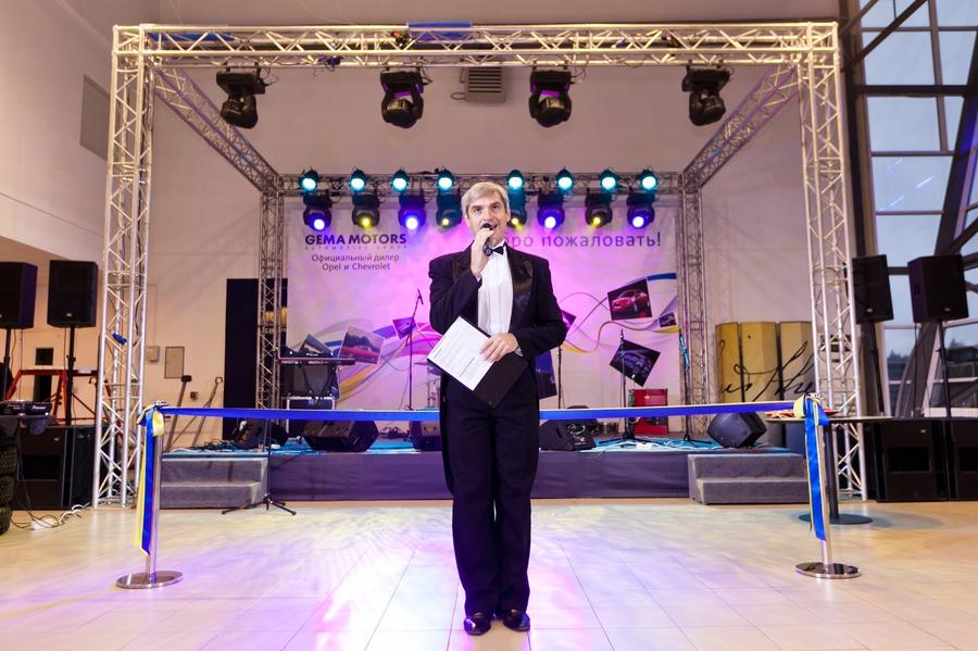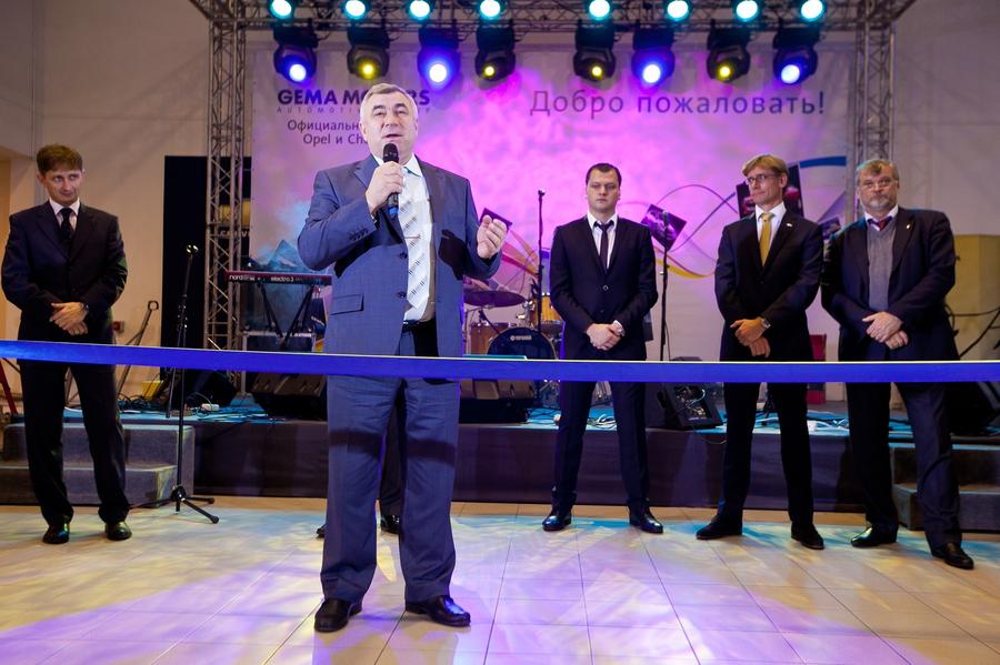 Ведущим мероприятия стал Андрей Андреев, актер и профессиональный конферансье. Для торжественной части мероприятия он пригласил на сцену множество официальных людей из компаний «ГЕМА Моторс», Opel, Chevrolet и администрации города Краснознаменск, рядом с которым открылся новый автосалон. Глава Краснознаменска Анатолий Тришин произнес множество теплых слов в адрес компании «ГЕМА Моторс» и все вместе чиновники и топ-менеджеры автомобильных компаний разрезали символическую красную (а, точнее, сине-желтую – в корпоративных цветах Opel и Chevrolet) ленточку, ознаменовав официальное открытие нового автосалона.